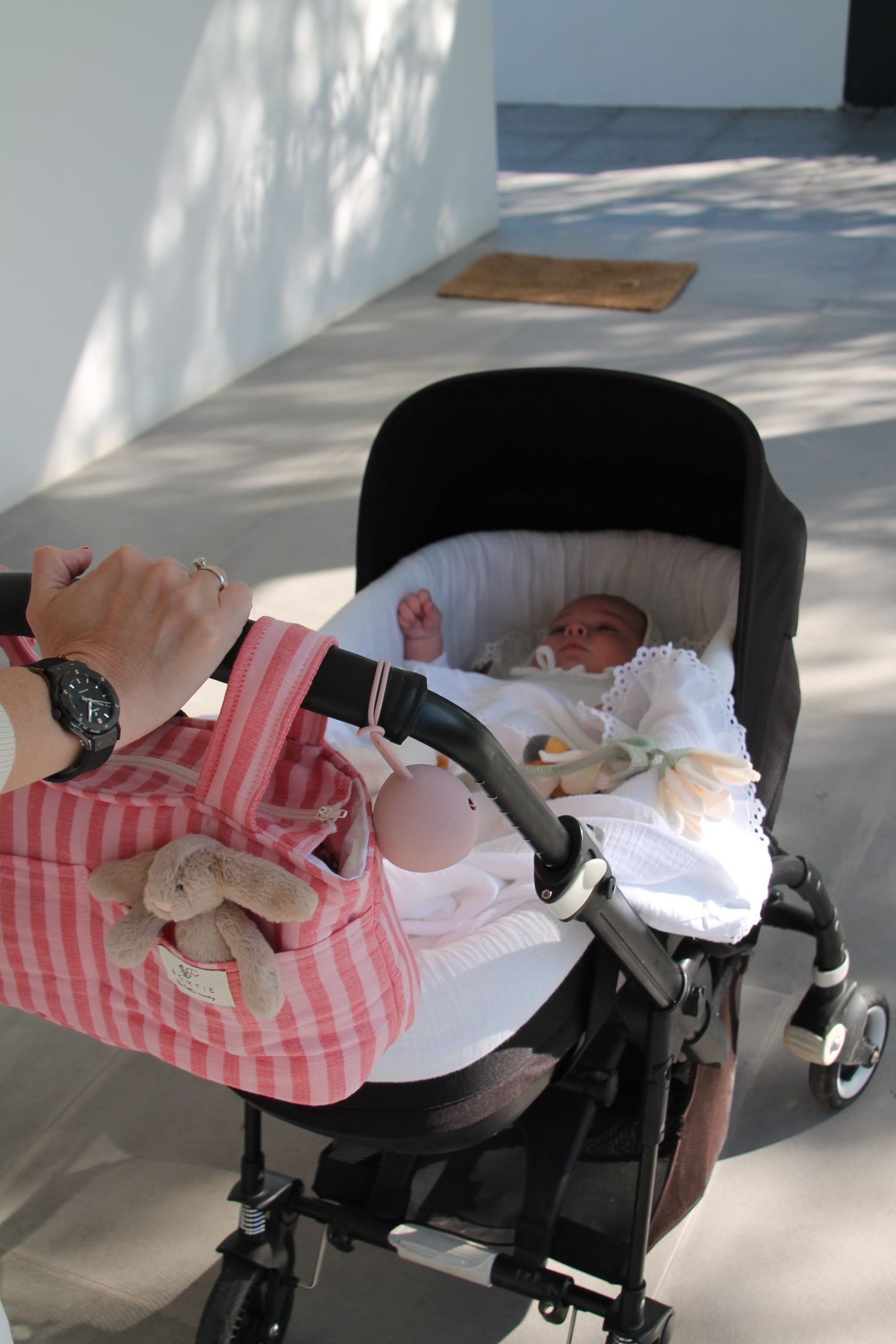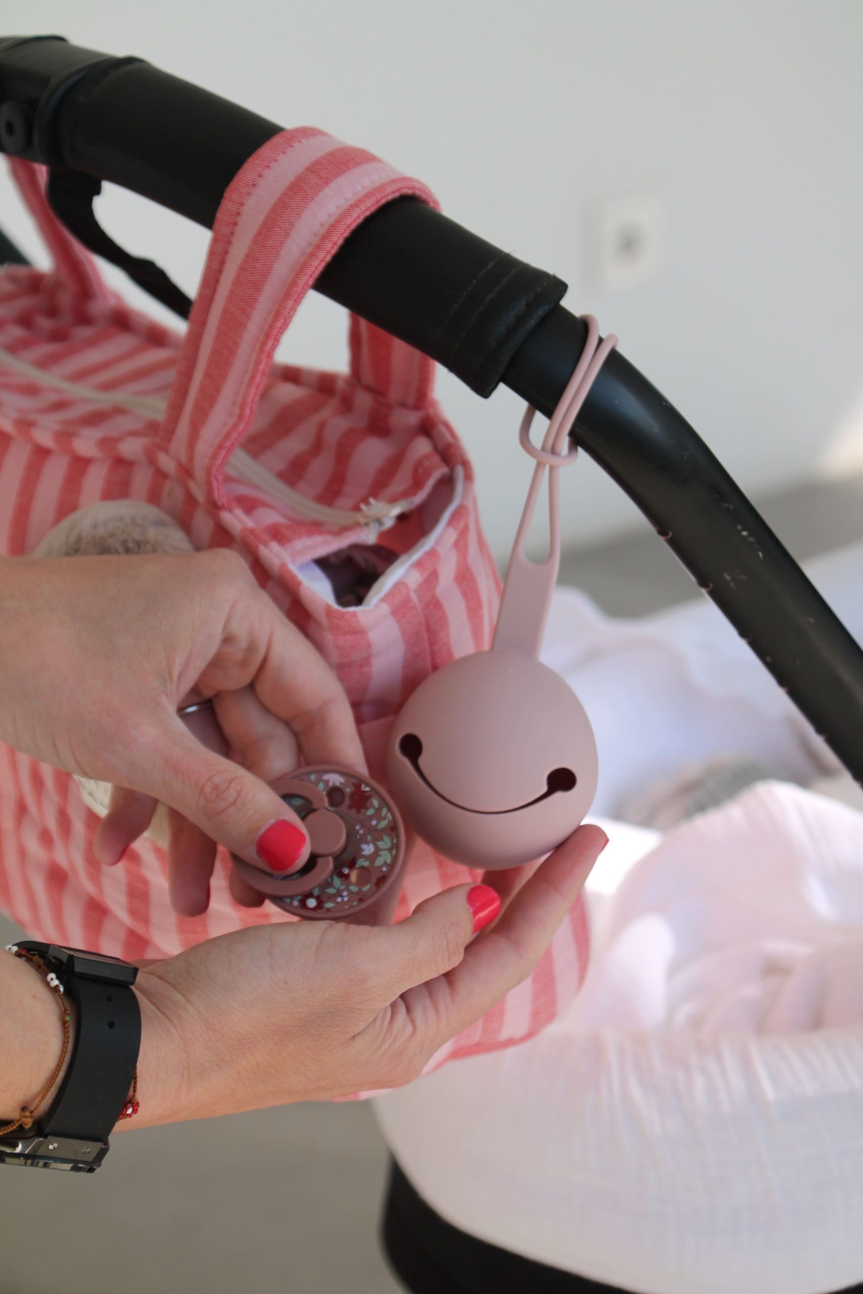 La bolsa de carro stripes, es una bolsa pequeña para colgar en el carro , ideal para los imprescindibles. Tiene dos bolsillos exteriores para tener a mano lo que mas usas. Cierre con cremallera, para tener todo a salvo pero a la vez accesible. Incluye un pack de ganchos para evitar el desgaste del interior del asa que sufre al contacto con el manillar del carrito.